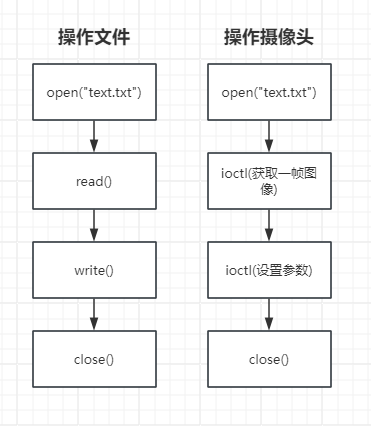对摄像头的操作本质上也是对文件的操作:打开——读取——关闭。但摄像头文件有其特殊性——内容是动态产生的: