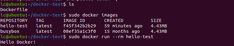 sudo docker build -t hello-test .  #默认基于当前路径的Dockerfile进行构建